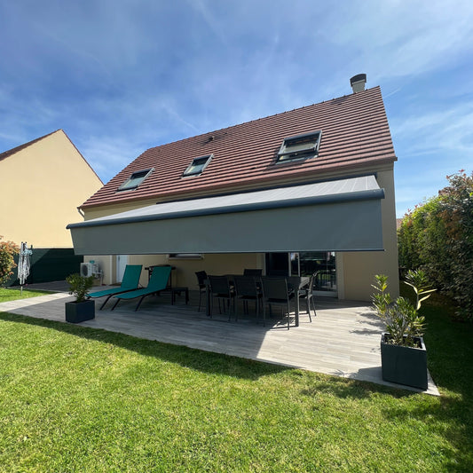 REALISATION DE 3 STORES COFFRE TERRASSE AVEC LAMBREQUIN DEROULABLE - YERRES (91)